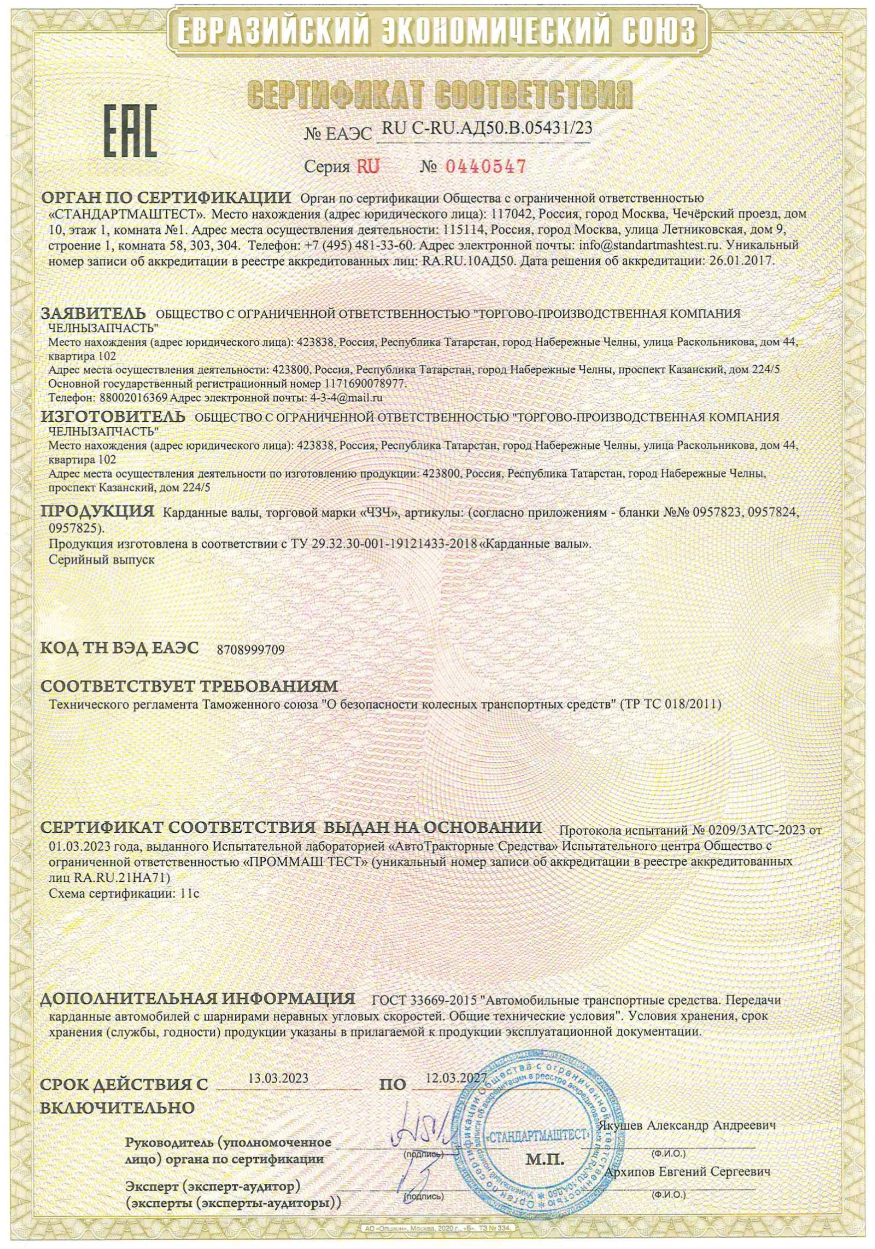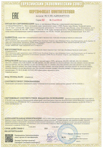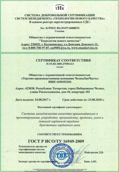 Торгово производственная фирма ТПК ЧелныЗапЧасть более 15 лет производит карданные валы, крестовины и другие запчасти на все виды техники, включая грузовые иномарки и изготовление по специальным заказам по размерам заказчика, под торговой маркой «ЧЗЧ».